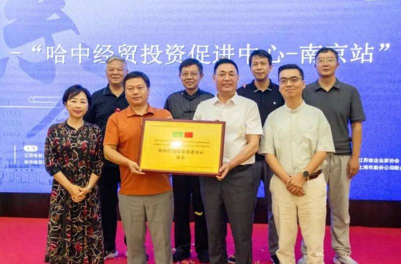 会议最后也是交流会最精彩环节,“哈中经贸投资促进中心-南京站”正式揭牌。哈中经贸投资促进中心主任王慧与江苏省股份制企业协会会长徐玉忠共同为牌匾揭幕,全场掌声雷动,共同见证这一精彩时刻,相信在该中心的推动下,江苏与哈萨克斯坦的经贸往来将更加紧密,合作成果将更加丰硕。